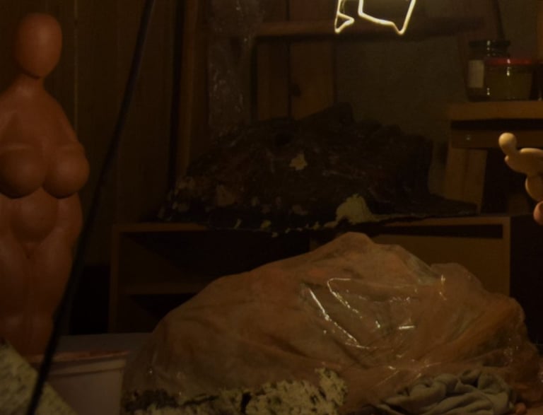 Façonnées avec des matières naturelles (écorce, plâtre, fibres végétales) ces œuvres évoquent des récits universels et ouvrent un dialogue entre visible et invisible.
